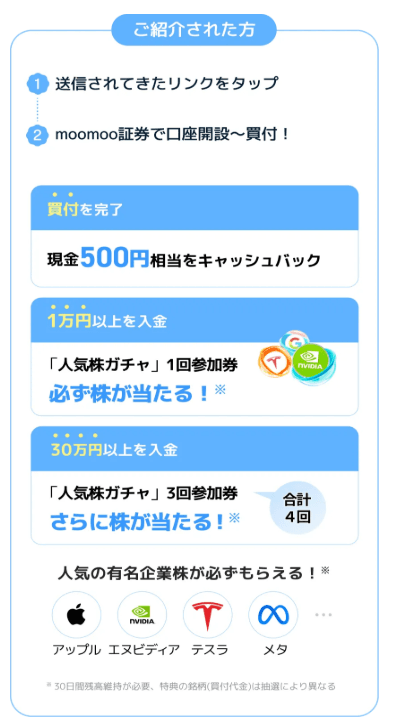 moomooご紹介プログラムで1人最大25,000円もらえるキャンペーンを紹介します。