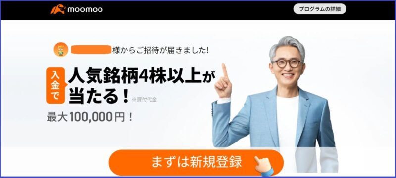 moomoo証券は現在ユーザー獲得の為に、紹介プログラムを実施しています。