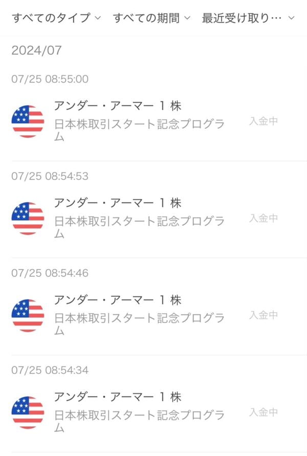 ちなみに私は30万円出金して、moomoo証券にはアンダーアーマー4株だけが残っている状態です。